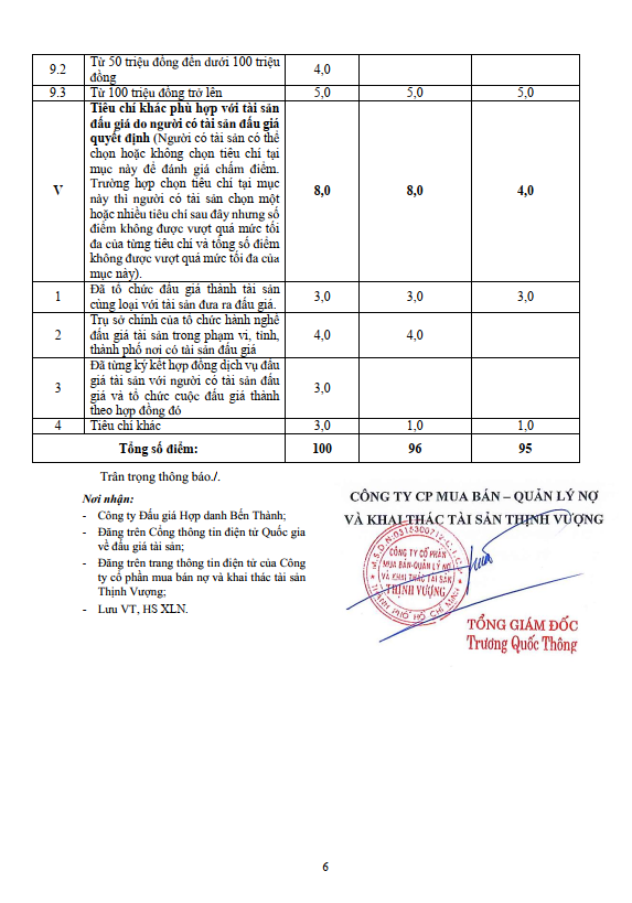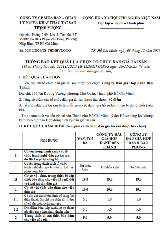 Thông báo kết quả lựa chọn tổ chức đấu giá