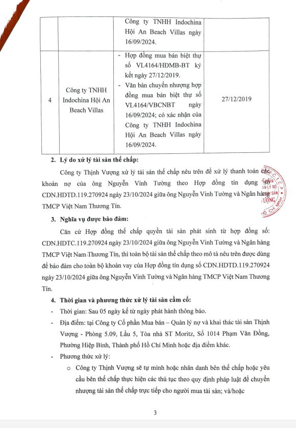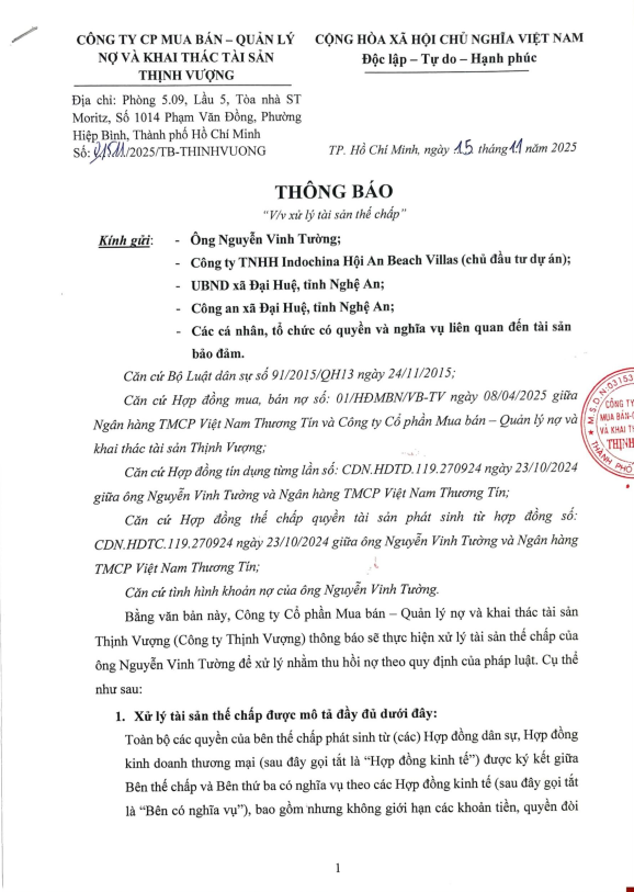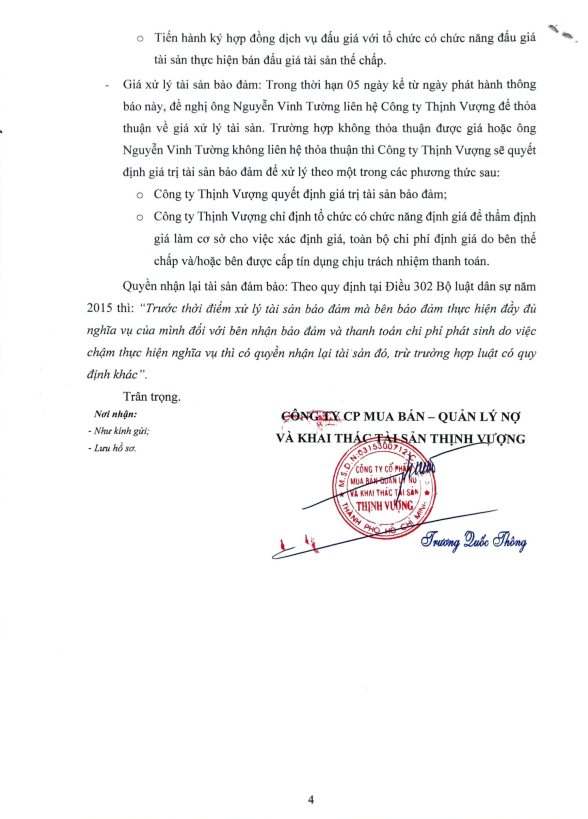 Thông Báo Xử Lý Tài Sản Thế Chấp Của Ông Nguyễn Vinh Tường