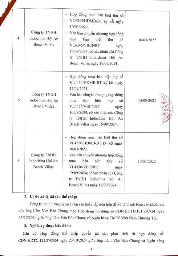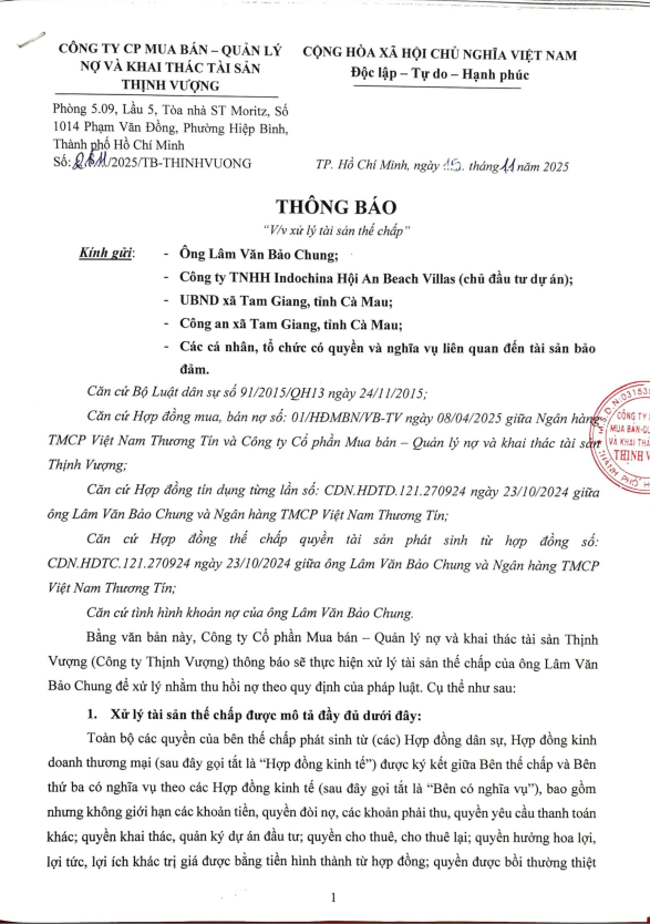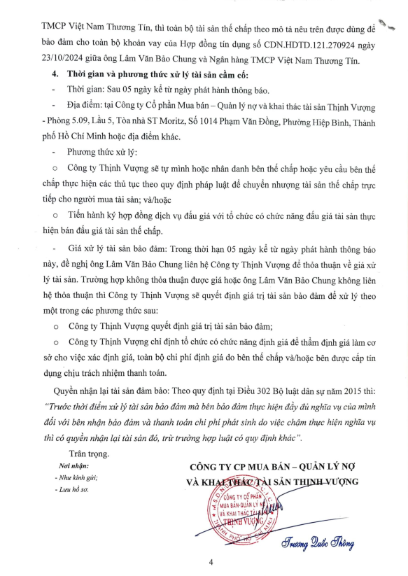 Thông Báo Xử Lý Tài Sản Thế Chấp Của Ông Lâm Văn Bảo Chung